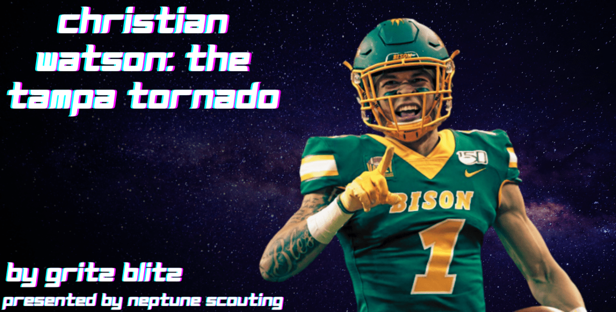 What takes a young man over 1,500 miles away from his hometown of sunny Tampa, Florida all the way to the cold plains of Fargo, North Dakota? Loyalty. Christian Watson attended football powerhouse Plant High School in Tampa, Florida. He was a late bloomer in high school who didn’t hit his growth spurt until his junior year. He was overlooked by most schools, except for North Dakota State. They believed in him, and he rewarded that belief with a commitment to their program. Christian caught on as a high school senior and began to attract attention from several Power Five programs, but it was too late for them. He was a North Dakota State Bison.