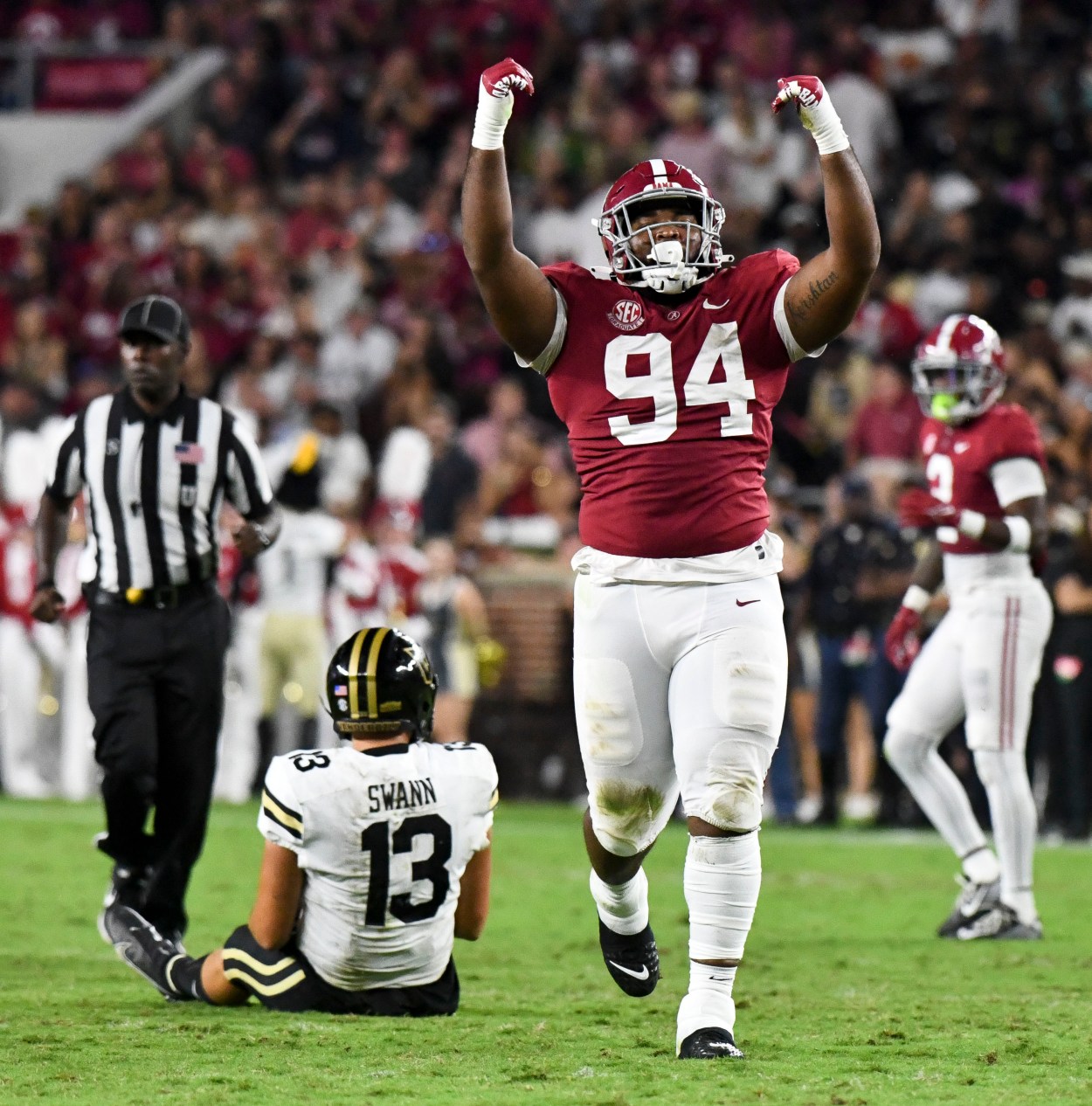 DJ Dale is a large human being. He is so large that he can’t stay on the field. Dale took snaps in all four of his years at Alabama but never was a full-time starter because of how easily he tires. With little stamina, Dale’s motor is extremely low. If Dale doesn’t win off the line he will likely give up on the play. He is powerful and explosive, for short periods of time. In run defense, Dale eats up blocks (thanks to his size), but as previously stated, his low motor means that he isn’t going to fight to catch a running back past his initial contact. Dale also will rarely pursue further than his reach, but again with his size he is able to swallow up runners if he can get to them. He doesn’t get his pads super low, however, his hand strength and placement help to make up for his lack of pad depth. Dale plays one position, DT. He will not move around on the line, he just sits in the middle. Obviously, Dale has a big frame at 6’0″, 300 lbs but I do worry about his frame if he can’t stay on the field at this size.